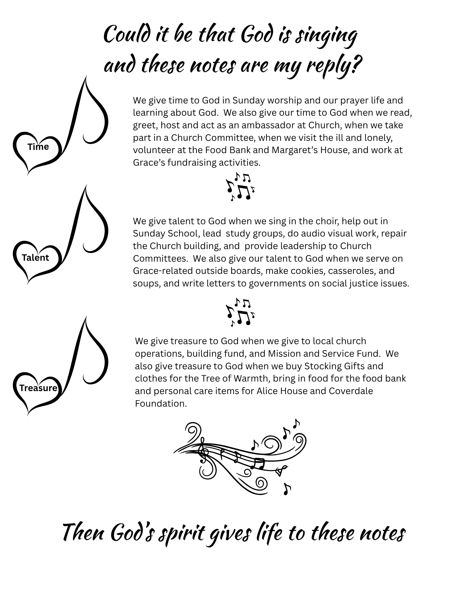 Please continue to support Church by filling out a celebration plate with loonies or toonies. Plates are available at the King St. entrance. If you wish to have this added to your donations for income tax purposes, please put your name on the container.
