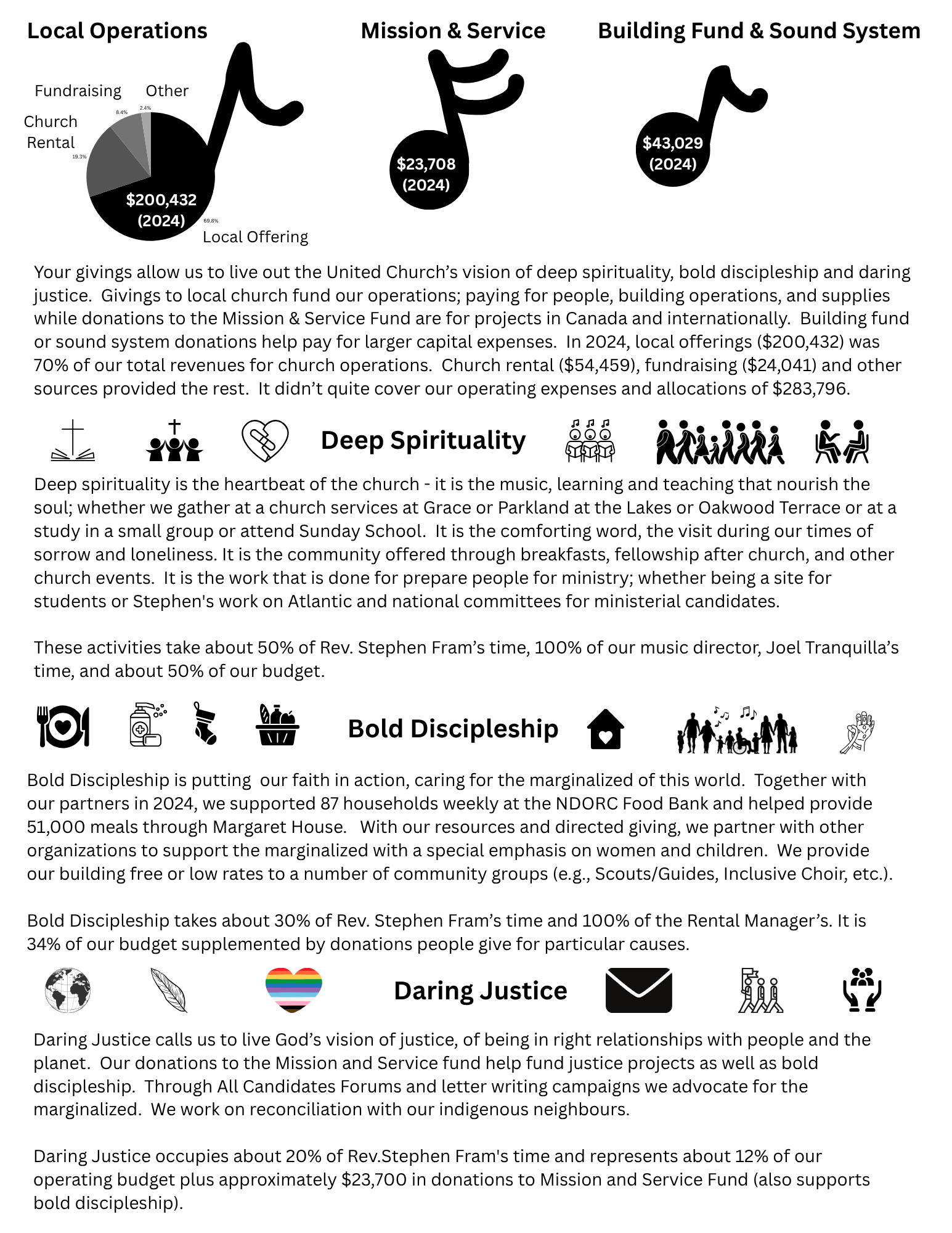 See the end of the page for our infographic for the Fall 2025 stewardship campaign. Click here to see the letter to PAR givers. Click here to see the letter for Envelope givers. Click here to see the letter to general givers.